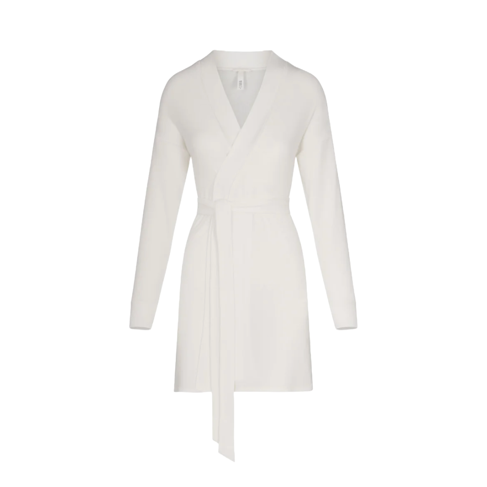 There are jokes on TikTok that the everything shower leaves you feeling exhausted and weak in the limbs, and it's absolutely true, so it’s a necessity to make your post-everything shower routine easy and relaxing. Slipping into a luxe robe will make you feel as if you’re on a vacation, and if one brand truly rode the loungewear wave to unprecedented success in an incredibly beautiful way, it's SKIMS. Perfect for lounging and layering over sleepwear, the Soft Lounge Robe is composed of super-soft modal ribbed fabric that drapes effortlessly in all the right places. This short robe features an adjustable self-tie belt and functional side pocket for maximum usability and comfort.