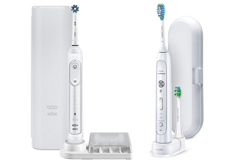 “Electric toothbrushes are the way to go,” contend Pelham, NY cosmetic dentists Dr. Alexander E. Vaiman and Dr. Irina V. Kessler. Their brushes of choice: Oral-B and Philips Sonicare. Echoing this response, San Francisco cosmetic dentist Swati Agarwal, DDS says her two favorite brushes are also Oral-B and Philips Sonicare. While both options boast high-performing similarities, there are a few differentiators that may help if you’re torn between the two.