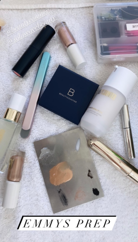 Celebrity makeup artist Jamie Greenberg prepped the Emmy-nominee with a double-dose of skin-care treatments. Up first: hydrating and brightening Revive Skincare's Masque de Radiance ($150), followed by the innovative CurrentBody Skin Dr. Harris Anti-Wrinkle Mask ($125), designed to soften the look of wrinkles in minutes. "The best red carpet makeup starts with great skin-care prep," says the artist.