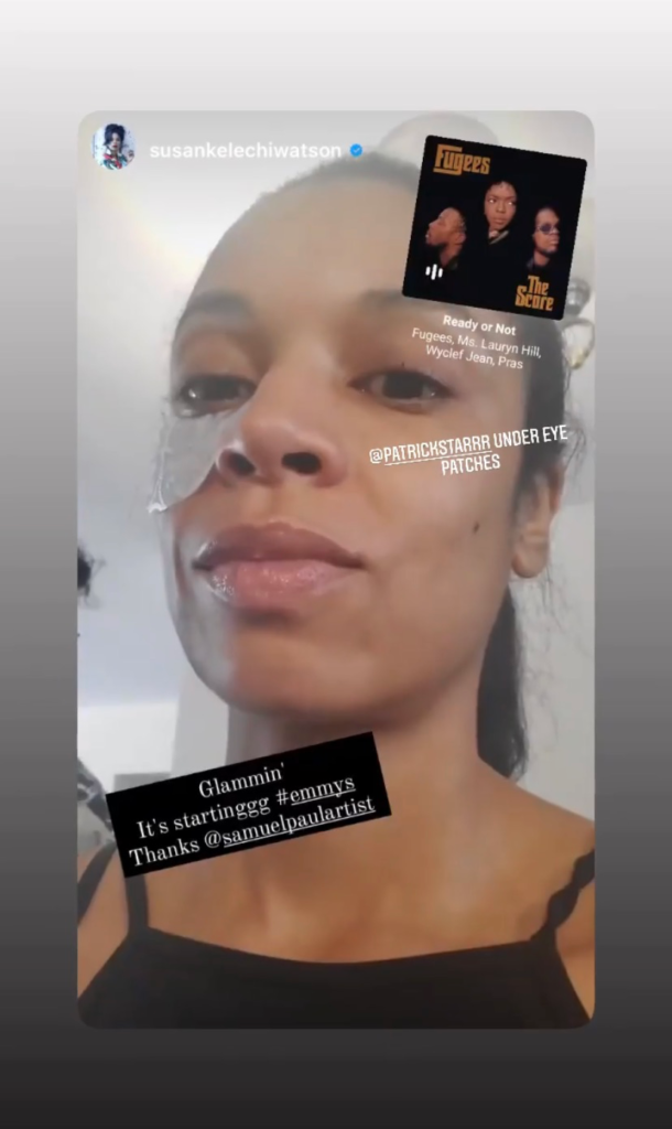 Celebrity makeup artist Samuel Paul Morales prepped This Is Us star Susan Kelechi Watson's skin with none other than ONE/SIZE by Patrick Starrr Secure the Blur Hydrating Under Eye Patches ($25 for 6) to hydrate the under-eye area, de-puff and prep for makeup.