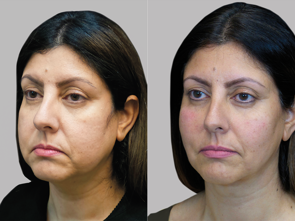 To give this 50-year-old patient a younger look, Dr. Summers combined his facelift technique with buccal fat pad removal and micro-liposuction to contour her lower face.