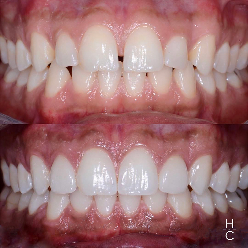 Dr. Hoffman whitened and straightened this 35-year-old patient’s discolored, gapping teeth with an in-office whitening treatment and Invisalign.