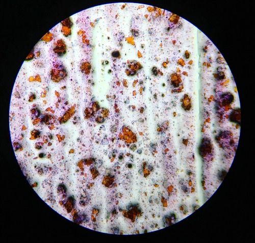Fascinating, right? Luckily for us, Oyler examined 10 other lipsticks under the microscope and is planning on doing the same analysis on eye shadow, highlighters and blush in the future. Until those results are posted as well, here’s a look at some of our favorite images from Oyler’a lipstick findings: