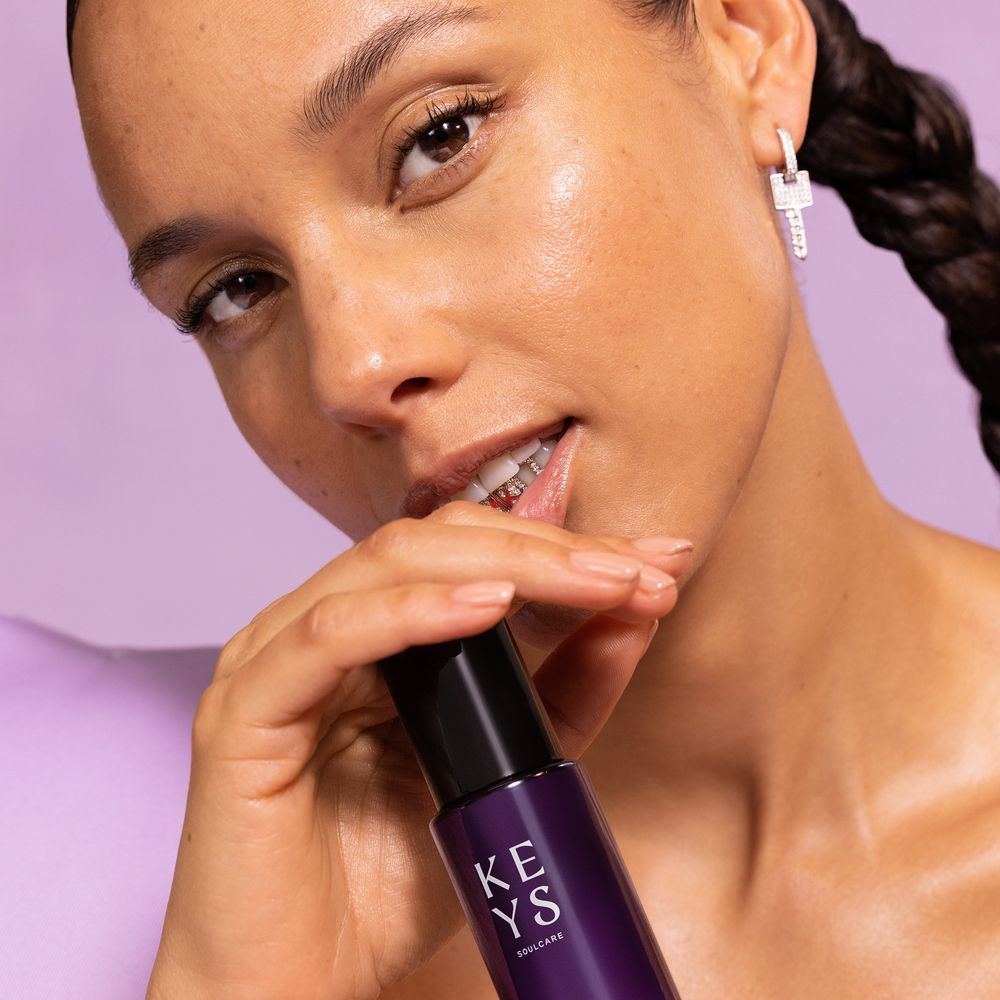 Keys provides a "soulcare benefit" for each product in the collection, and for this one, she says "it helps you radiate with confidence and lets your inner light shine through." She also assigns a mantra to each one, which she encourages people to say in the mirror as they apply the product. For this serum, the mantra is "I give myself permission to glow."
