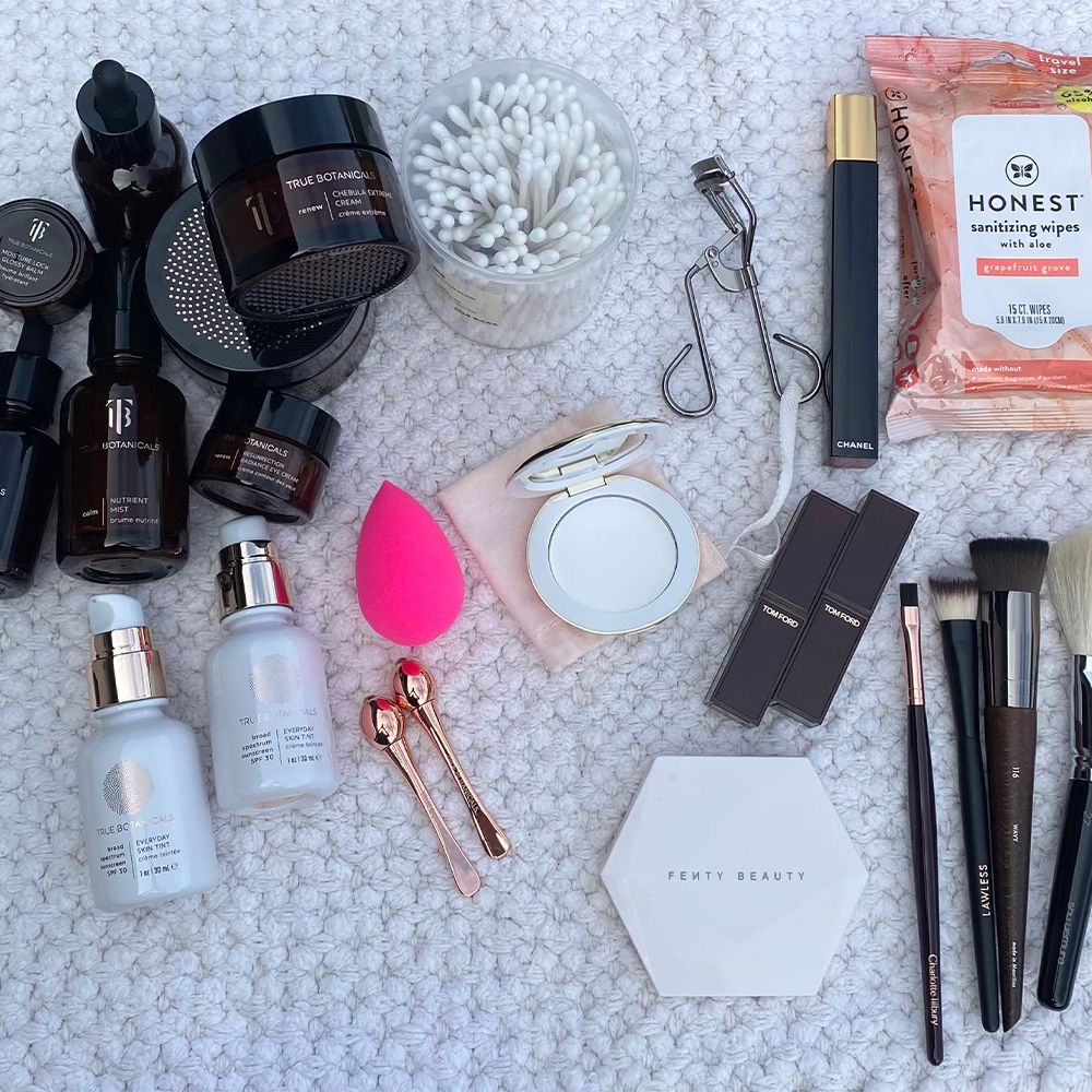 For the eyes, Quynh dotted a little Tom ford Traceless Soft Matte Concealer in 2N0 ($60) and set it with Westman Atelier Vital Pressed Skincare Powder ($75). “Then, I brushed up her brows with an Anastasia Beverly Hills Brow Freeze ($23). I finished the eyes with two coats of Chanel Noir Allure Mascara in Noir ($42) to her top lashes. For her face, I mixed True Botanicals Everyday Skin Tint SPF 30 ($54) in 2 and 3 and applied it all over. Next, I dotted Traceless Soft Matte Concealer ($60) under her eyes and wherever else I set her T-zone with Westman Atelier Vital Pressed Skincare Powder ($75). Then, I lightly sprayed her face with True Botanicals Calm Nutrient Mist ($24) to give her skin an instant boast of refreshment. For her lips, I applied True Botanicals Moisture Lock Glossy Lip Balm in Clear ($24).”