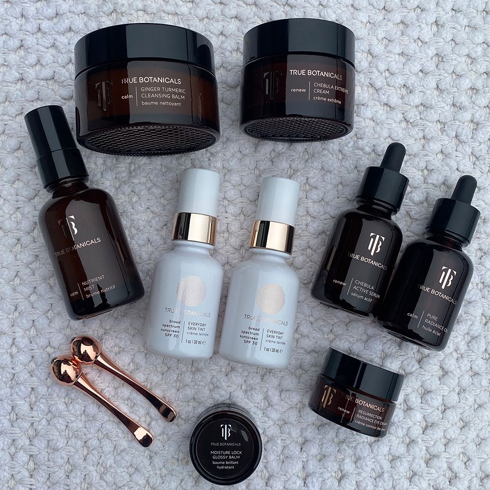 “I started by cleansing her skin with True Botanicals Ginger Turmeric Cleansing Balm ($48),” shares makeup artist Mai Quynh. “I scooped a small amount and warmed it up onto her skin while using a circular motion. After a minute, I had her rinse her face with lukewarm water. Once her skin was toweled dry, I applied True Botanicals Chebula Active Serum ($90) to her face. I ‘slugged’ her skin by applying eight or so drops of True Botanicals Renew Pure Radiance Oil ($110). Then, I slathered True Botanicals Renew Chebula Extreme Cream ($110) to her face."