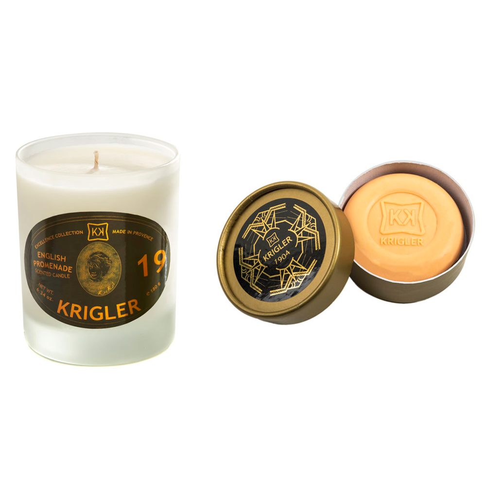 English Promenade 19 is still one of Krigler's best-selling scents, and it now comes in the form of a candle ($105) or as a bar soap ($55).