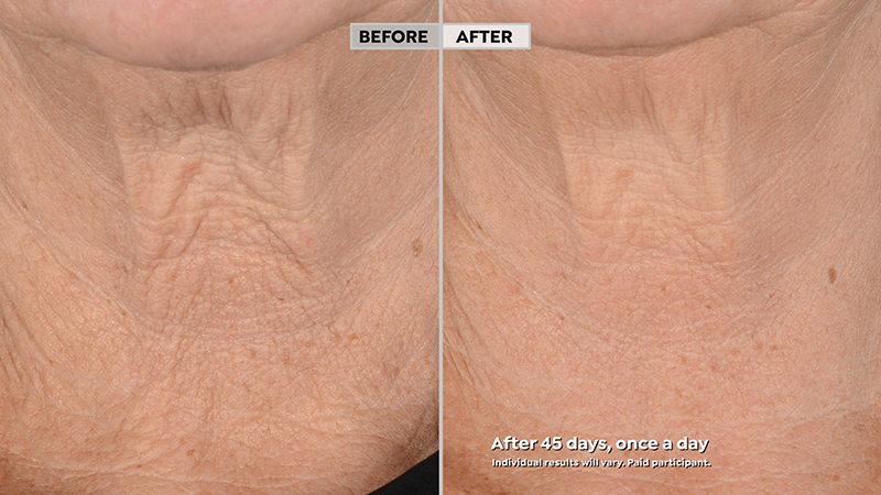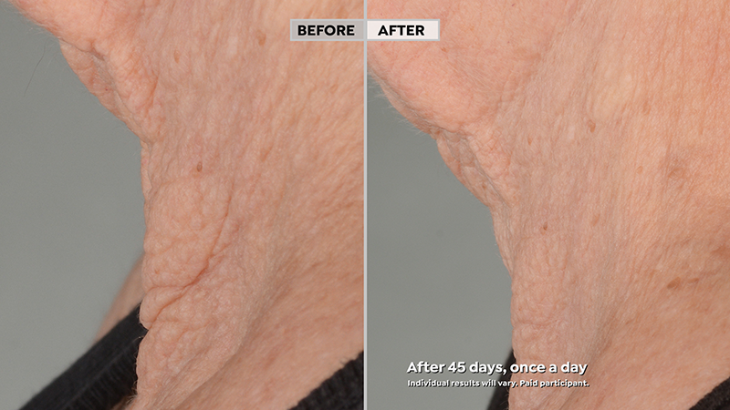 While the results in both of these photos show what happens after 45 days, a blend of sorghum stalk and 3D Protein delivers a tightening effect right away. After all, we’ve already been waiting long enough to find a neck cream that works, right?
