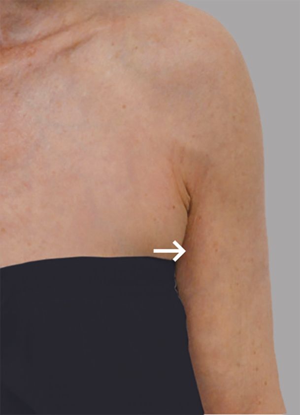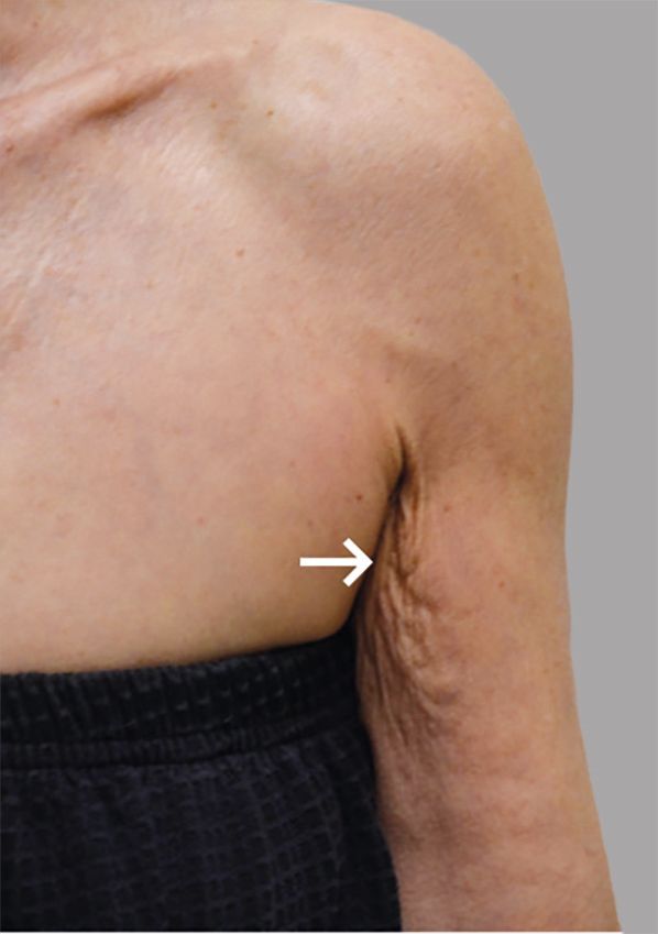 To treat crepey skin on this 58-year-old patient’s inner arm, New York dermatologist Julie Russak, MD used Ultherapy.