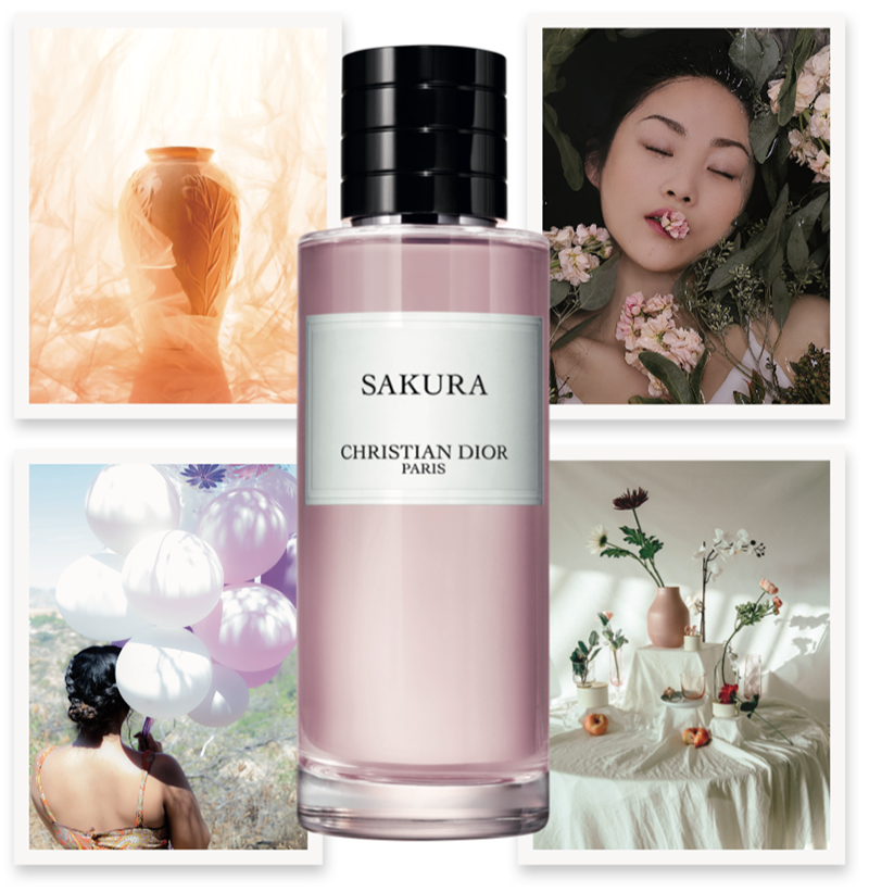 Dior’s legendary nose François Demachy bottled his idyllic memory of blooming cherry blossoms from one of his many trips to Japan. Without knowing anything about the scent, both Jazmin Hamilton (bottom left) and Baz Here (top left) picked up on the lightness of the fragrance, depicting pastel balloons and airy tulle. And with no awareness of the Japanese connection, Lotta Lemetti intuited an Ikebana-esque tablescape (bottom right). A medley of plush, pink blooms came to mind for Daryl Spiegel (top image), who was reminded of his “nanna, an artist who loved working with fresh flowers,” and Alina Grafkina (top right), who smelled “very soft, gentle flowers.”