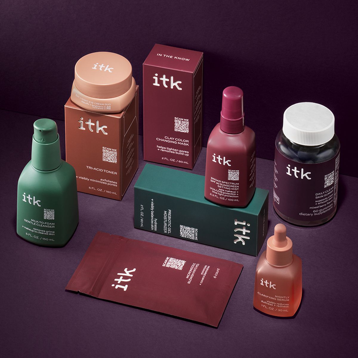 "Yes, another fun element of ITK is that we’re implementing a technologically advanced side to it: We have QR codes on all of our bottles and boxes," says Bailey. "If you scan the box, it takes you to an in-store experience, where a 3-D AR [augmented reality] version of the bottle pops up and you can kind of play with it, and it also gives you recommendations for other products within the line that you might be interested in purchasing based on that product. If you scan the code on the bottle, it takes you to an at-home experience with more information on key ingredients and benefits, and it’s really fun and interactive. We’re going to be doing a lot of education to help people learn how to build their skin-care routines using our products."