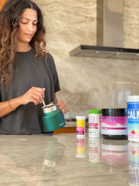 “I have a tea station with all kinds of herbs like cinnamon, clove, star anise and all those things, but I thought, ‘What can I add for my beauty?’ So, I started adding the NeoCell Collagen Powder—I don’t even taste it in my tea. At night, I add the Natural Vitality Calm Powder instead, which has magnesium in it. Even with a healthy diet, many of us are probably deficient in some kind of vitamin or nutrient, and magnesium is something a lot of people are deficient in. I don’t know what the magic trick is, but at night I add it to my tea and it just clears my mind and I get really calm and relaxed. I’ve also noticed that the next morning, I wake up completely refreshed and ready for the day.”