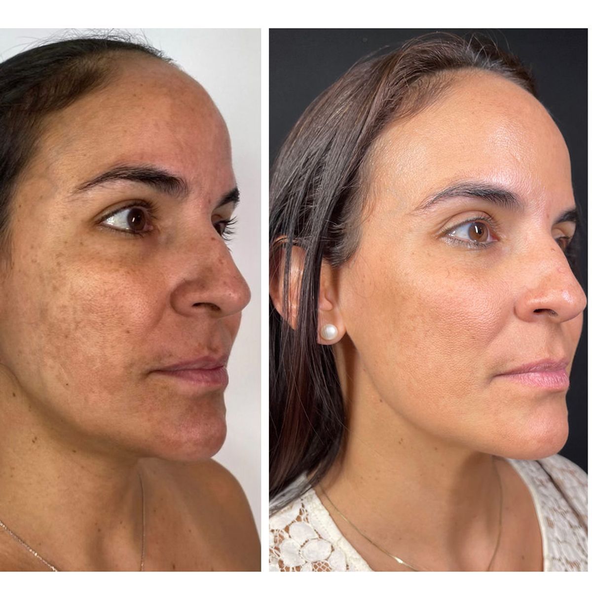 To treat this 43-year-old patient's hyperpigmentation, Peterson performed two treatments of Palomar IPL and Clear + Brilliant Permea spaced two months apart, followed by four treatments of the Aerolase Neo and a Glytone Mandelic Peel spaced one month apart.