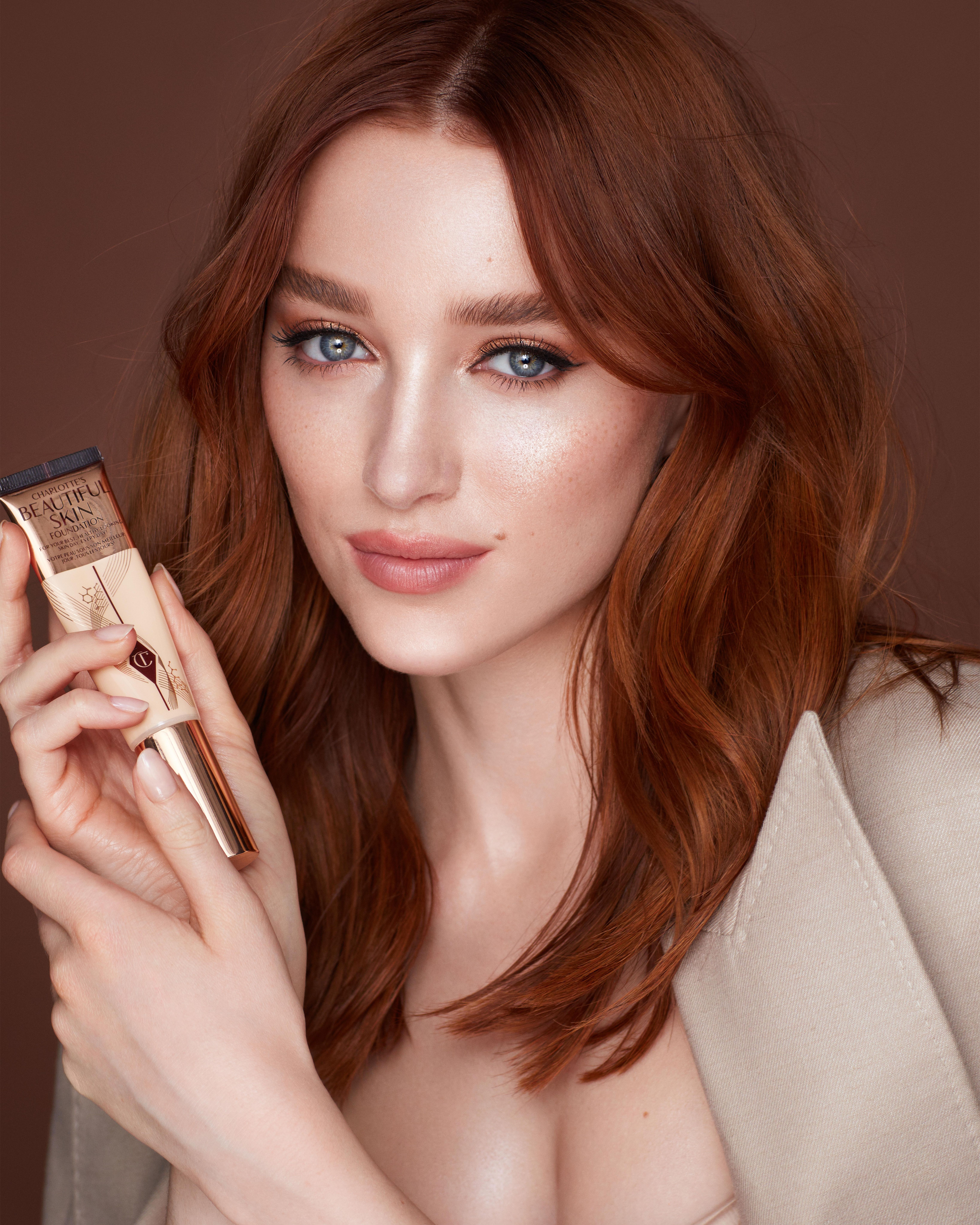 On a virtual press event to usher in the British makeup artist’s latest launch, aptly named Charlotte’s Beautiful Skin Foundation, she is particularly proud of this fact. “This launch combines science and color,” she explains of the formula that’s been three years in the making. “It treats the skin and transforms it at the same time.”