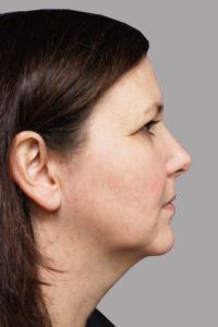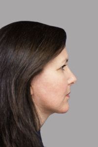 While performing a facelift and browlift, Newtown Centre, MA plastic surgeon Joseph Russo, MD used an implant in the chin of this 53-year-old patient to help reshape her face.