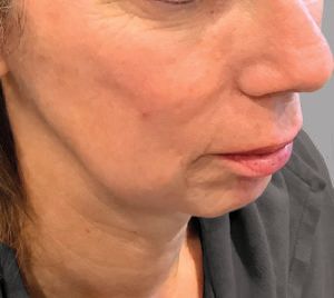 New York facial plastic surgeon Dilip Madnani, MD says he performed a mini-facelift and a lip lift, and used Restylane Lyft in the chin of this 45-year-old patient to give her a more defined jawline that complemented her features.