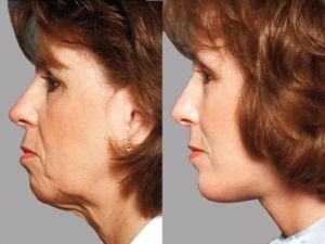 Necklift: Just like liposuction, fat is removed through an incision in the crease under the chin, but with a necklift, the platysma muscle is tightened in the midline, creating a greater improvement than can be achieved with any other procedure in the appropriate patient.