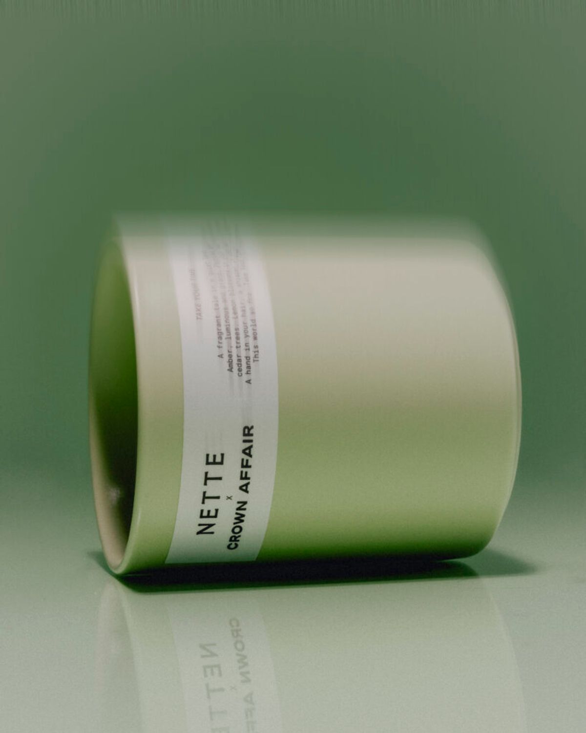 The collaboration stems from a shared passion for clean beauty, so it’s only fitting that NETTE founder Carol Han Pyle is a long-time Crown Affair enthusiast herself. “Crown Affair products are the only things I use on my hair,” she shares. “Wash days are the best because my whole bathroom smells like their delightful signature scent all morning. I was beyond excited to partner with Dianna and her team to create a candle in a hand thrown Crown Affair-green ceramic with their fragrance ever-so-slightly evolved to be perfect for home.”