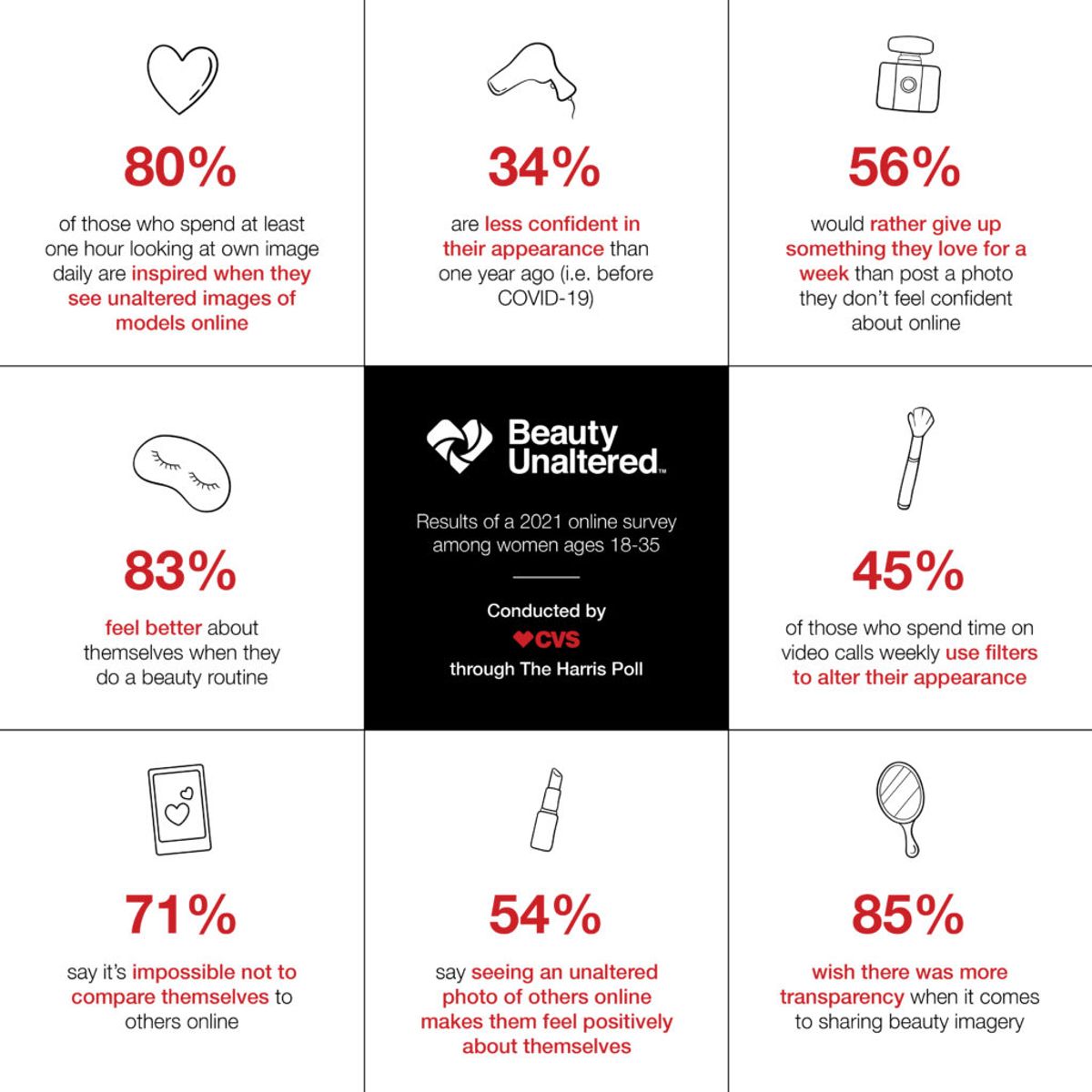 The brand conducted an online survey among women aged 18 through 35 and found that 56-percent of women would rather give up something they love for a week than post a photo online that they didn't like. The survey also showed that one in three women is less confident in their appearance than a year ago, but that they feel inspired by unedited images of models. This research showcases the importance of the retailer's initiative in helping women with their confidence and security during this time and how beauty brands can make a major difference in the industry.