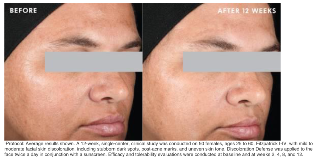 In a 12-week clinical study, results showed a 60-percent average improvement in the appearance of stubborn brown patches, a 59-percent average improvement in the appearance of skin discoloration, an 81-percent average improvement in the appearance of post-acne marks, and a 59-percent average improvement in the appearance of even skin tone. The studies also proved that the serum works on all skin tones, and some users saw results in as little as two weeks!