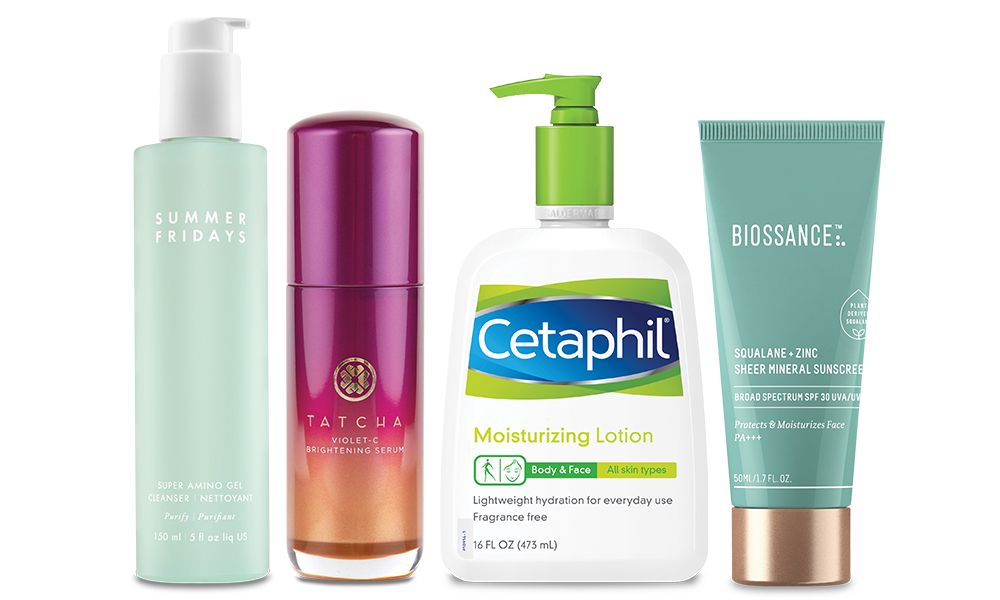 Vitamin C serum is also a must for my mornings. Tatcha Violet-C Brightening Serum ($88) has AHAs [alphahydroxy acids] that work with the vitamin C to help even out my skin tone.