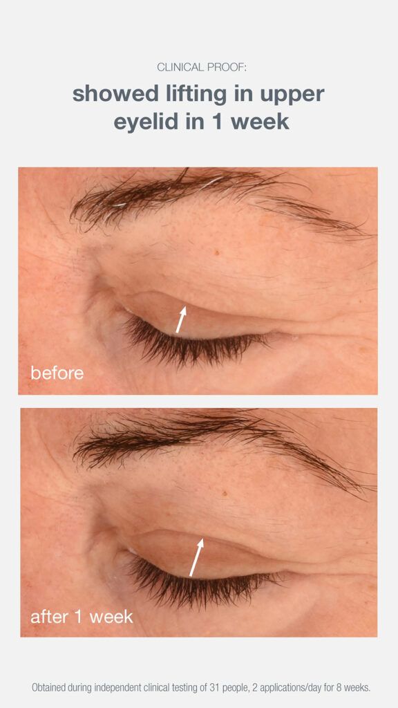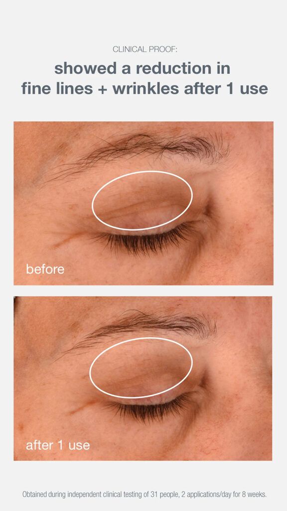 According to the brand, it takes just one use to see measurably lifted eyes, and in a clinical trial 97 percent of participants showed visible lifting in their upper lids. 97 percent also reported brighter skin and 94 percent saw a noticeable reduction in wrinkles.