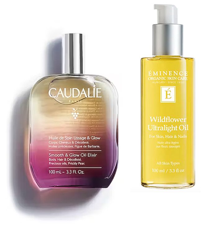 Caudalie’s newest launch, Smooth & Glow Oil Elixir ($49), is also a dry oil, made with grapeseed, prickly pear and sesame oils. “Argan and almond oils tend to be present in wet body oils, and while those ingredients are also in this product, the unique combination of the 100-percent natural oils leaves a hydrating, nongreasy finish on the skin,” says Berthelot. The natural, fig-scented formula is vegan, pregnancy and breastfeeding safe, and can also be used on the hair and nails. “When tested by professional hairstylists, the prickly pear oil in the Body Oil Elixir instantly nourished the hair without leaving any greasy residue.”