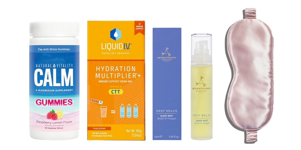 “I’ve had to cut back on my supplement routine this year being pregnant, but two pregnancy-safe—my doctor OK’d, but always ask your doc first—are Natural Vitality CALM Gummies ($36) for a daily dose of magnesium (I love every flavor), and the original Liquid IV ($25), which helps me stay hydrated on days when I don’t feel like I can’t drink enough water. However, I’ve heard there are some lower-sugar options, so I’m on the lookout for a healthier alternative. I love the concept though. For extra sleep support, I love to spray my sheets and pillow with Aromatherapy Associates Deep Relax ($30) and slip on a silky Slip Sleep Mask ($50). I also don’t go a single night without my white noise machine, and I don’t have a TV in my bedroom (against my husband’s wishes), but I think that helps to keep everything more relaxed.”
