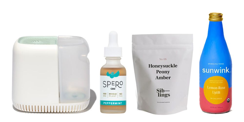 "As the air becomes more arid, hydration becomes more important for my dry, reactive skin. The Canopy Humidifier ($150) helps keep it moisturized and looking its best, and the built-in aroma diffuser lets me use my essential oils for an instant mood boost. There may be a lot of beautiful candles out there with super luxe vessels, but I love Siblings Candles ($24) because they automatically cut down on waste by letting me pour a semi-DIY candle into whatever container I have on hand, making it a wonderfully sustainable option for sprucing up and unwinding. For a full-body relaxation, I’ll grab Spero’s fast-acting Peppermint CBD Tincture ($65) which instantly shifts my mood and improves my memory and sleep. When I’m feeling extra sluggish, which—let’s face it—is more often than not, I’ll grab a Sunwink Lemon Rose Uplift sparkling tonic ($48 for 12). With a blend of lemon balm, rose, and hibiscus (known to lift your spirits), it serves as a quick pick-me-up to get through a particularly long day."