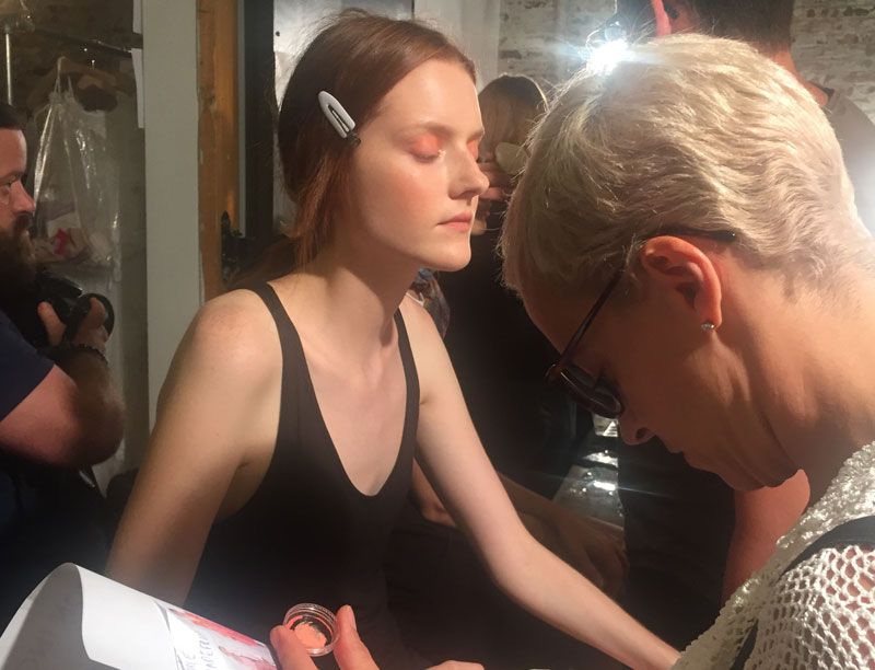 “I love how fresh and effortless this peachy-coral look from Ulla Johnson is. It just looks healthy and radiant and seems like something you could actually do at home with only a few minutes to spare. Romy Soleimani used Weleda products and her secret trick is to apply the brand’s Skin Food to the eyes to create glossy shine. Romy said, ‘This is my all-time favorite product—and truly is a staple on site. You can use Skin Food in a million different ways. My favorite way is to add a highlight to the cheekbones by gently pressing in the cream. [For this look], we used it to create the eye look, but I’ve used it in so many different ways.’ Seriously, if one product can give that kind of look, I’m stockpiling.”