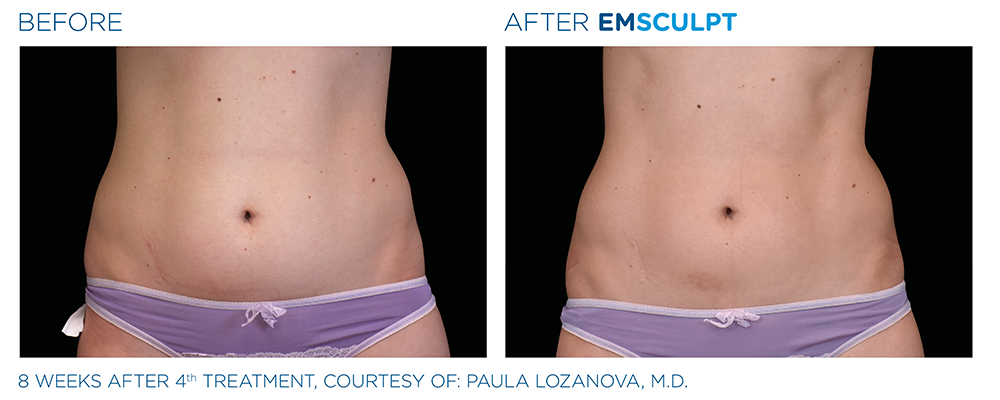 FDA-cleared for the “improvement of abdominal tone, strengthening of the abdominal muscles, development of firmer abdomen [and] strengthening, toning, and firming of the buttocks,” this non-invasive procedure is taking the aesthetics industry by storm. Emsculpt reduces fat cells (by 19 percent) and builds muscle fibers (by about 16 percent) after just four treatments.