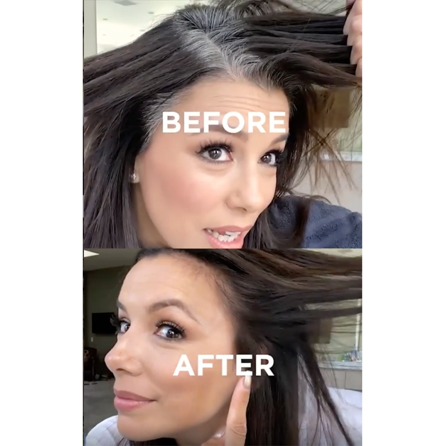 To our surprise, the color came out flawless and all of her grey hairs were completely gone. This was the final push we needed to finally purchase the box dye that has been sitting in our (online) shopping cart for weeks. If you're not quite ready to die your own hair—which is totally understandable—check out the L'Oréal Magic Root Cover-Up ($8), yet another product that Longoria raved about on her Instagram weeks ago. The temporary color only lasts until your next shampoo and you get great results without even having to wet your hair.