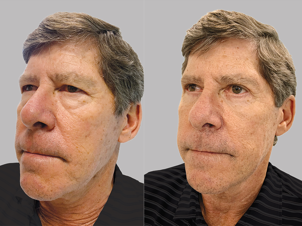 This 65-year-old patient received both a lower and upper blepharoplasty to rejuvenate his tired appearance.
