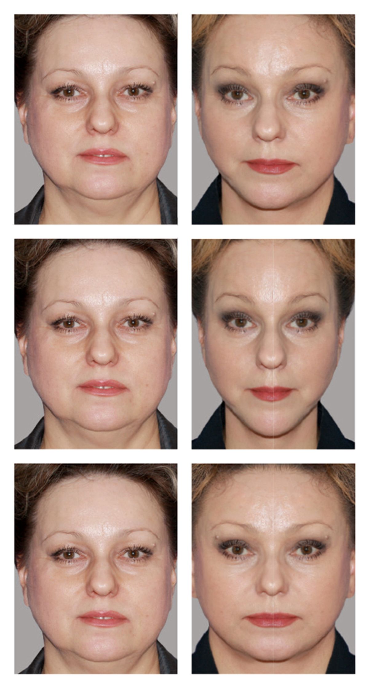 Dr. Vasyukevich performed a full-facial rejuvenation on this 55-year old patient, including a facelift, necklift, and upper and lower blepharoplasty. Images simulated to reflect how results would look if symmetrical.
