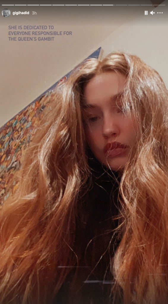"She is dedicated to everyone responsible for The Queen's Gambit," the supermodel captioned an Instagram story revealing her freshly dyed locks similar to the color that Anya Taylor-Joy's character Beth wore in the Netflix original show.