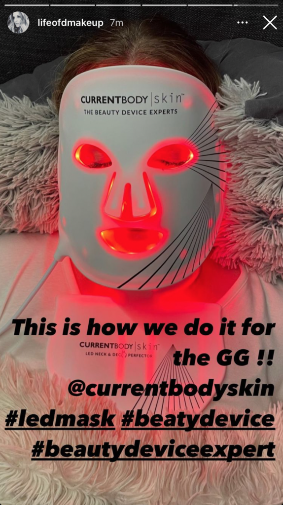 A clear favorite among celebrity makeup artists this year, a trio of experts leaned on the mask to perfect their clients' complexions before hitting the Zoom screen: celeb makeup artist Dana Hamel used the futuristic LED mask to prep Renée Zellweger's skin, sharing a selfie of the star masking before hitting the virtual carpet; celebrity makeup artist Sabrina Bedrani entrusted the mask for her client Gal Gadot's glowing complexion, and Jamie Greenberg, long-time makeup artist to Kaley Cuoco, called on the mask to all-around "better" Cuoco's skin ahead of tonight's awards show.