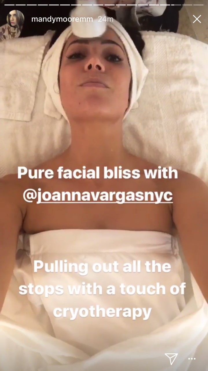 Mandy Moore may have missed out on a Golden Globe nomination this year, but she didn’t miss out on the pre-red-carpet prep. The gracious This Is Us star also thanked facialist Joanna Vargas for squeezing her into her very busy awards day schedule for a facial that pulled out all the stops with a “touch of cryotherapy.”