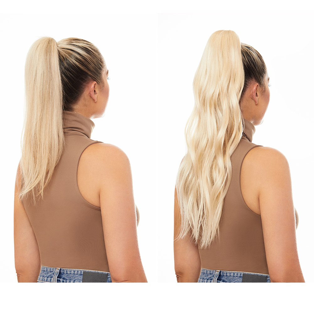 The Glam Seamless Platinum Ash Blonde 22” Invisi-Ponytail added length, fullness and radiance to this client’s style