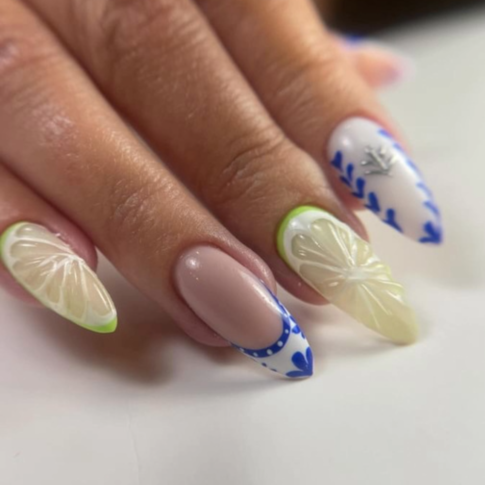 This month, social media sensation and famous nepo baby Hailey Bieber caused a social media frenzy with her intricately detailed farmers market mani. Bieber's nail artist, @nailybyzola on Instagram, shared an image of the star's manicure that featured images of blueberries, cherries and more, and all but revolutionized the nail trend scene in a few clicks.
