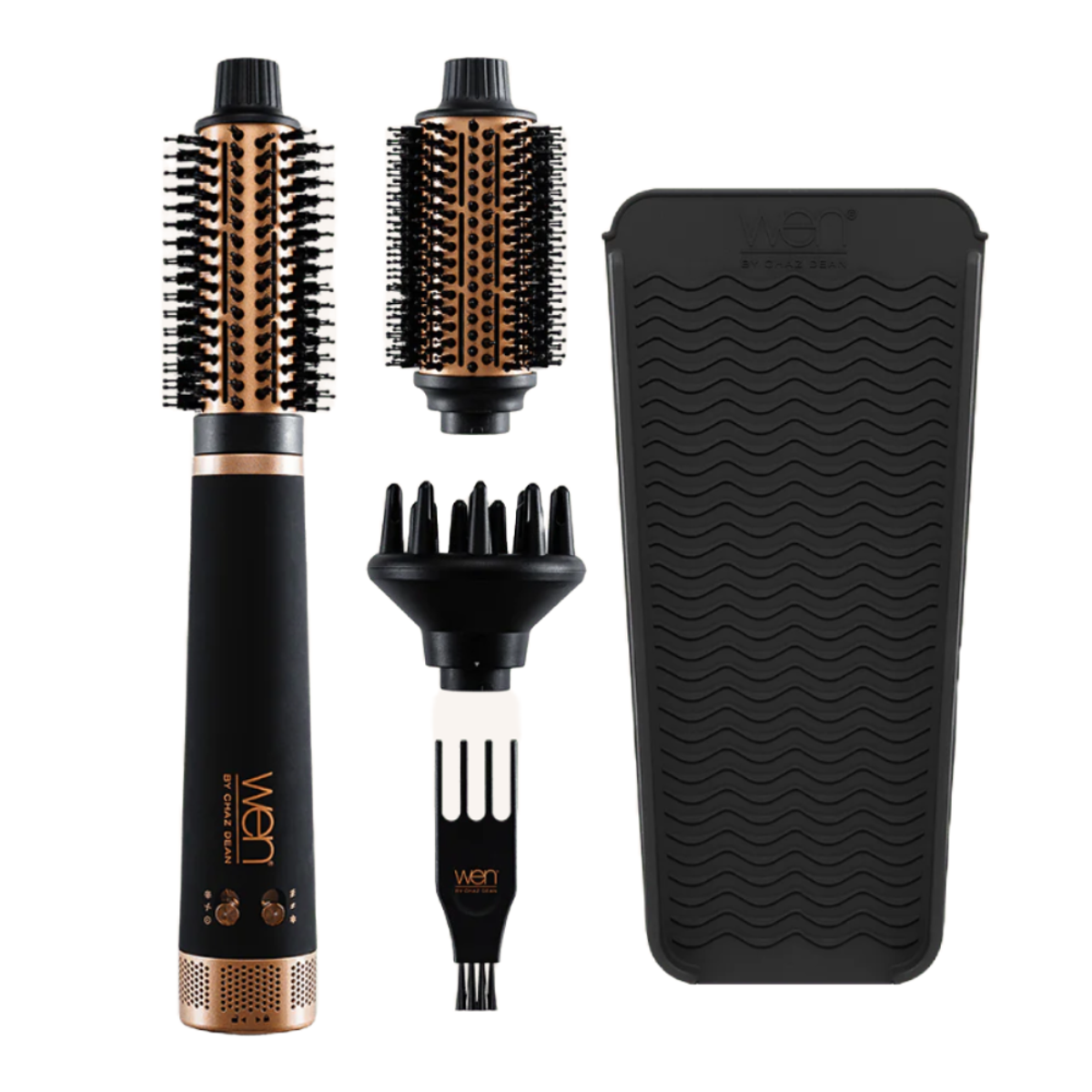 Dean’s own WEN Brush Dryer Styling Tool ($275) was designed with vegan bristles and lower heat settings to prevent hair damage. “The bristles are designed to be gentle on hair, avoiding direct contact with a hot barrel. The hair lays on the bristles and not the barrel, because you don’t want to heat up or burn your hair on the barrel.” This ensures a smoother, more polished finish without excessive heat.