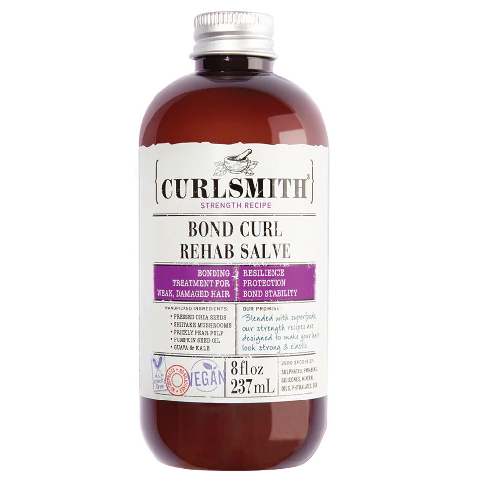 How to take care of it: Use moisturizing products, like those made with rich oils and/or butters (you may need several to achieve your hair’s optimal look and feel). “Protein fillers like bond-builders are essential, as they are designed to repair porosity by strengthening the protein structures and allowing the protective cuticle layers to remain closed,” says Caspara. “This increases shine and decreases frizz. They are also a great pre-treatment to chemical coloring services, which can weaken the hair.” Butcher recommends Curlsmith Bond Curl Rehab Salve ($30), which she describes as “an intense pre-shampoo treatment that targets all three hair bonds to repair and strengthen hair.”