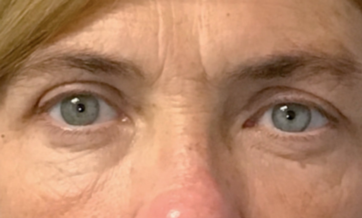 Dr. Schlessinger performed an upper blepharoplasty and ptosis repair to address this 56-year-old patient’s drooping eyelids.