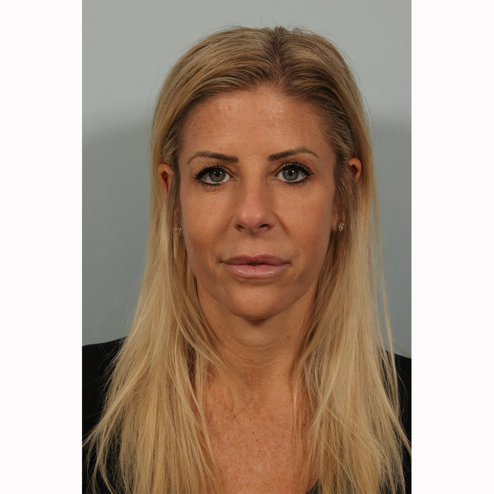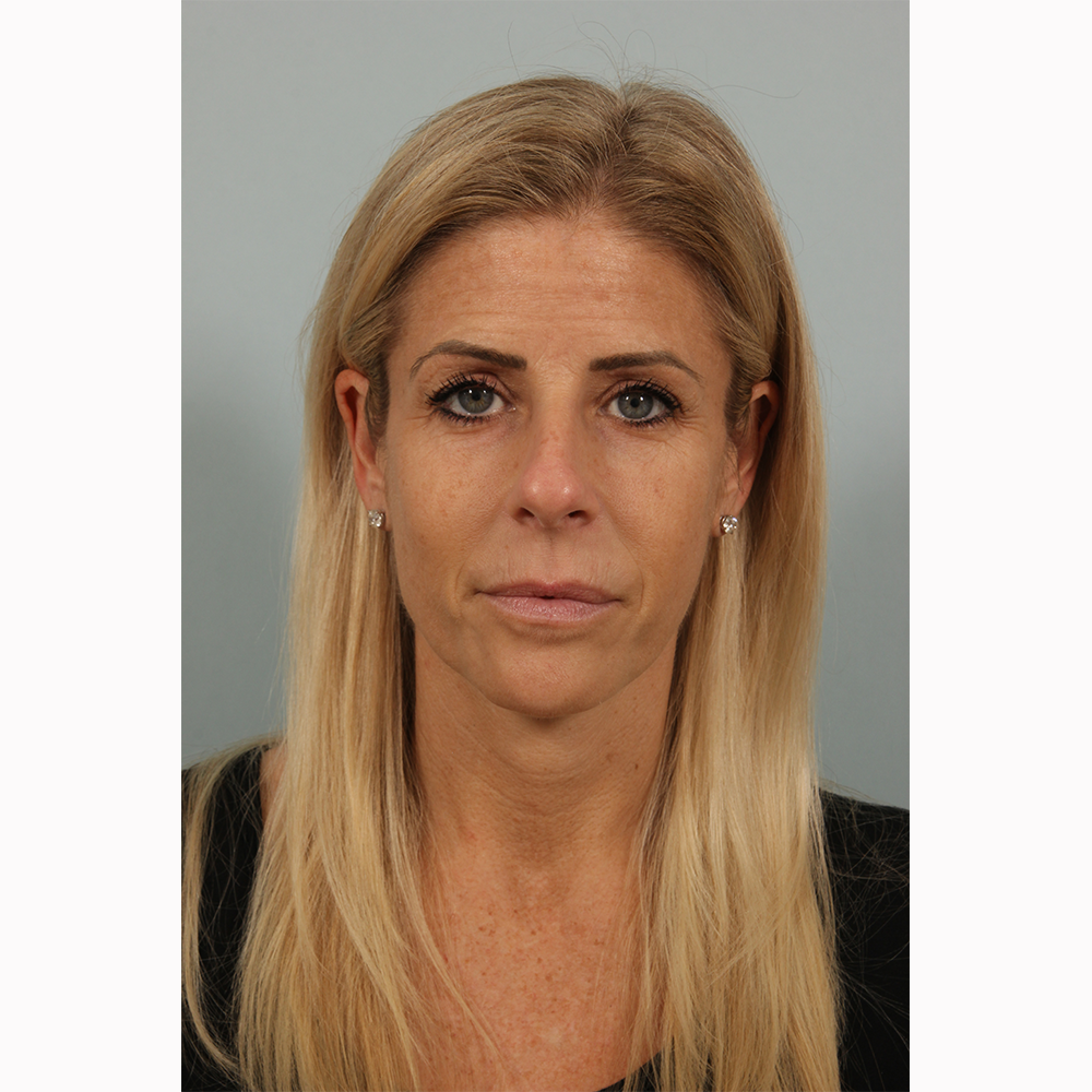 Concerned about lines around her eyes and what she called a “sunken- in look,” this 43-year-old patient opted for an injectable treatment. Dr. Beer injected the neurotoxin Jeuveau to treat lines around the eyes, and the hyaluronic acid filler Belotero Balance in the tear troughs, off-label, using micro-injections.