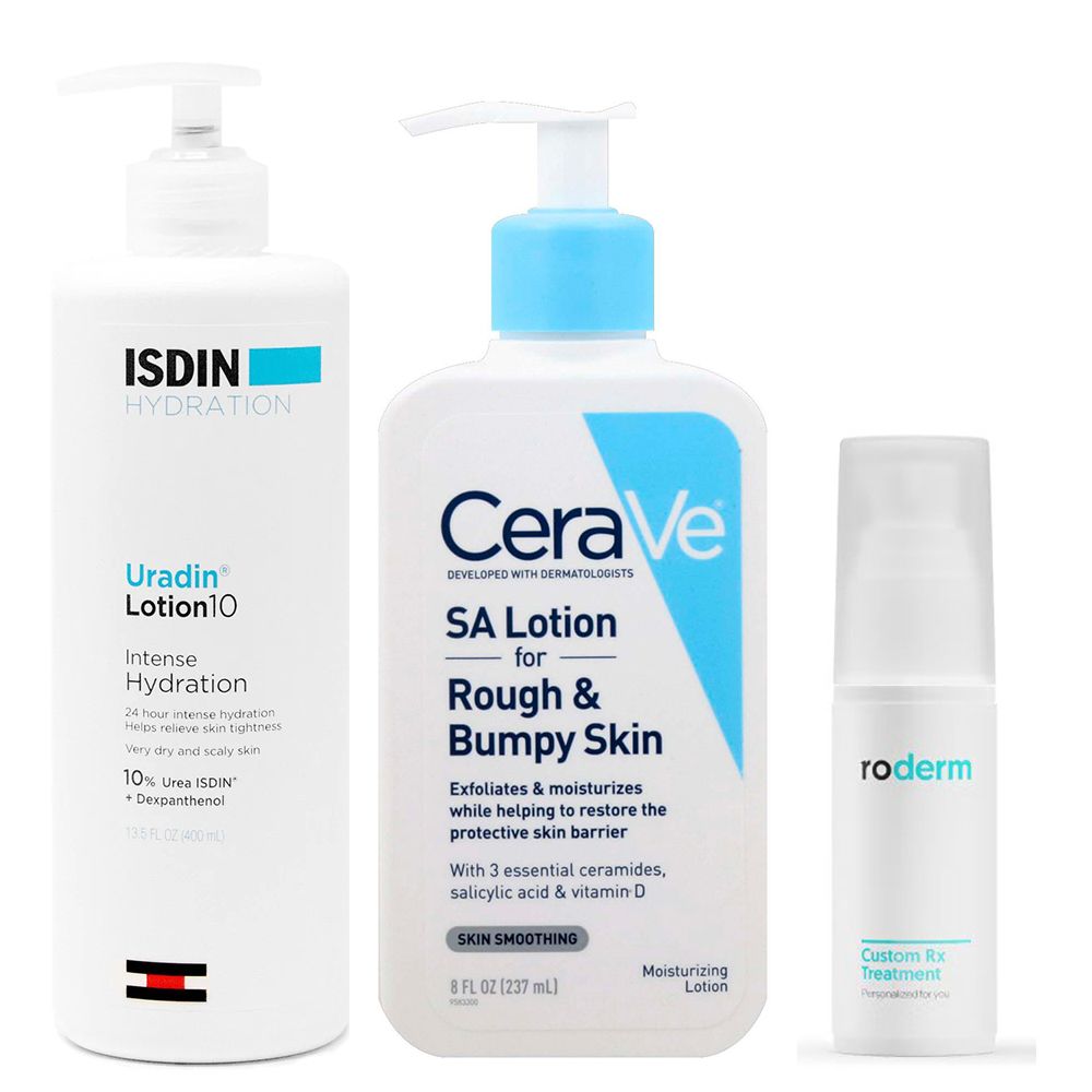 Choose an exfoliating body cream as they are able to target scarring and textural concerns as they moisturize. “There are a few such as ISDIN’s Uradin Lotion 10 ($39) and CeraVe SA Lotion for Rough & Bumpy Skin ($19) with salicylic acid,” says Dr. Rhee. “Since the skin on your back doesn’t produce as much oil as the skin on your face, I recommend applying the topical retinoid a few times a week at night, mixed in with your body moisturizer for better spreadability. I love RoDerm’s CustomRx tretinoin-based creams because they are super effective and feel good. Take a pea-sized amount of your topical retinoid, up to a dime-size depending on how much surface area there is, mix it right into your body lotion and then apply to your back before bed. You can increase to a nightly application as tolerated.”