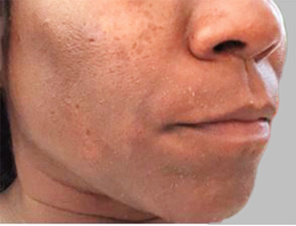 To lighten the dark spots on this 45-year-old patient’s cheeks, Dr. Zedlitz performed a chemical peel that included mandelic, lactic and salicylic acid, as well as other exfoliating agents and hydroquinone.