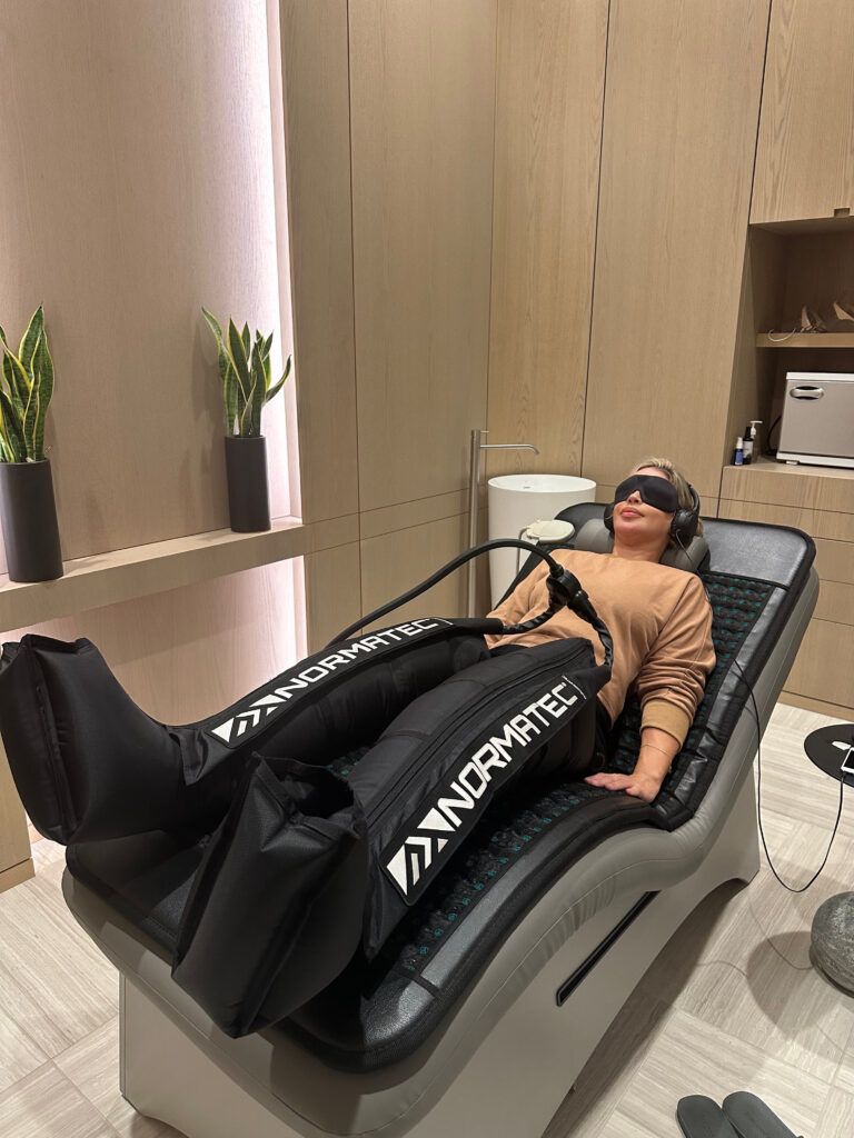 My treatment involved reclining on an anti-gravity bed, which relieved pressure from my joints, along with a HigherDose Mat. The HigherDose Mat employs Magnetic Field Therapy, heat, and healing crystals. Additionally, a pair of NormaTech Lymphatic Drain boots worked to detoxify and massage my swollen ankles. To soothe the stress response, a NuCalm Disc, activating my parasympathetic nervous system, enhanced my relaxation. Simultaneously, a meditation journey, utilizing specific frequencies to promote positivity, increase memory, and enhance awareness, resonated through noise-canceling headphones. All the while, I wore a blackout eye mask. I felt like the epitome of wellness, and my body couldn’t help but relax, unwind, and rejuvenate during those blissful 60 minutes.