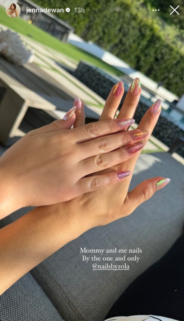 Jenna Dewan and fiancé Steve Kazee recently celebrated the arrival of their second child. In the weeks since, the actress, 43, has been candidly sharing glimpses of her postpartum experience with fans on her social media platforms. She's chronicled the latest chapter in her breastfeeding journey, shared a peek inside her beautifully styled Crate & Kids nursery, and most recently, given fans a glimpse into her current self-care routine. On Sunday, July 7, she took to her Instagram Story to show off her and her daughters' "mommy and me nails," courtesy of celebrity nail artist Zola Ganzorigt.