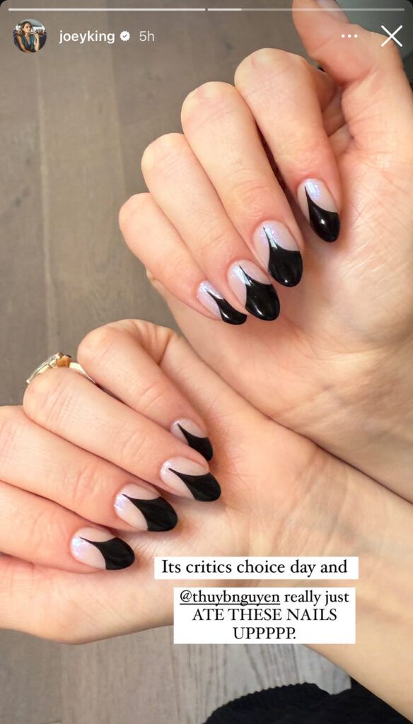 Created by celebrity manicurist Thuy Nguyen, Joey King's vintage-inspired nail look at tonight's Critics Choice Awards married timeless glamour with a modern moment.