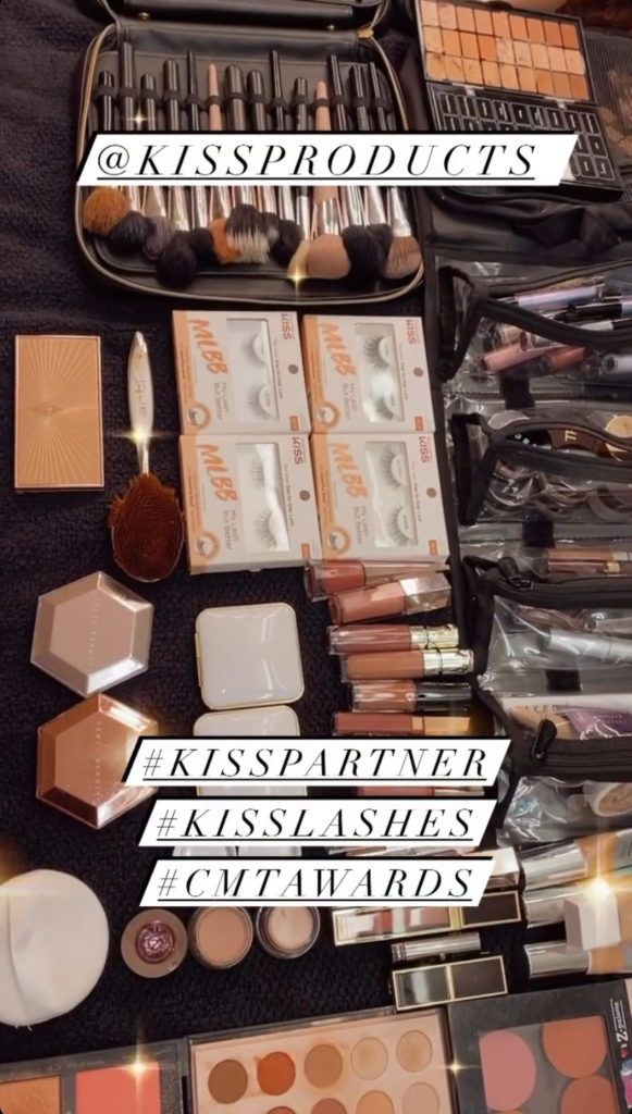 More makeup favorites can be spotted in a behind-the-scenes snap posted by the Feldman on Instagram prior to the show. Among them: KISS My Lashes But Better falsies ($5), an Artis Oval 8 Brush for a smooth foundation finish, and (our favorite) nude-lipsticks galore, including Fenty Beauty’s Stunna Lip Paint ($25) and Tom Ford’s high-shine Gloss Luxe ($55) for a camera-ready pout.