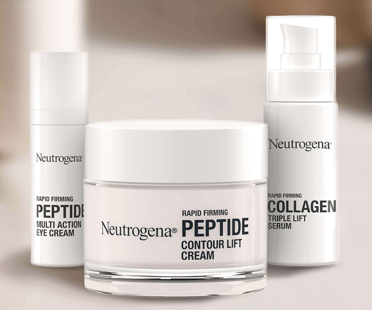 The Rapid Firming products have completely revolutionized my nighttime routine though. So different. One of the things Neutrogena is really proud of with this collection is that the size of the peptides is actually two and half times smaller than those in a lot of comparable products, which means it absorbs into the skin more effectively. The boost to your natural collagen is so strong and you really see the difference. I didn’t know a lot about peptides or collagen before, but the one-two punch of both of them in the product is so effective. I was like, ‘why is this called a contour cream,’ but then I started using it and it all made sense. It really does help with firmness and elasticity, and giving those youthful qualities to the skin. The eye cream [Rapid Firming Peptide Multi Action Eye Cream] is a total game changer! It’s actually made my morning routine so much better because I need less concealer, to be totally honest with you."